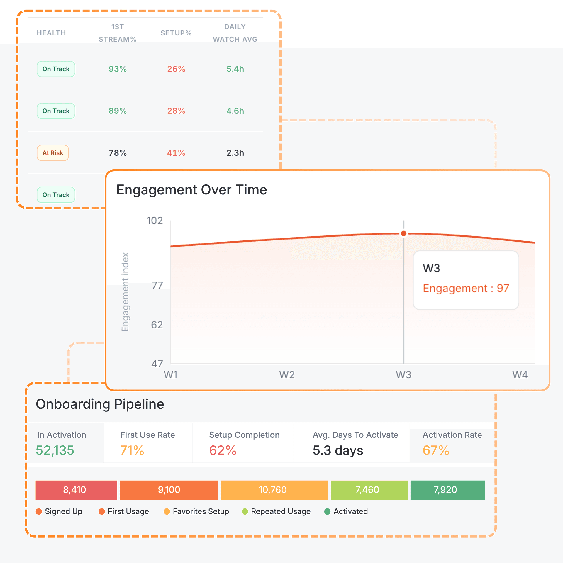 Connect your existing customer data. Behavioral, transactional, and engagement signals from the tools you already use. No new instrumentation required.